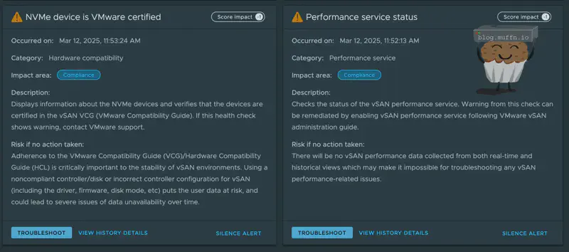 When ESA was deployed I got the expected warnings, mainly about my NVME drives not being supported.