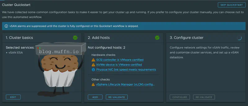 One thing I later learned about ESA was that it’s only supported on nodes that are certified for it by Broadcom. I just assumed it was ’nice to have’ but it’s actually a requirement, you just cannot deploy ESA with compatiblity warnings, for the most part anyway..