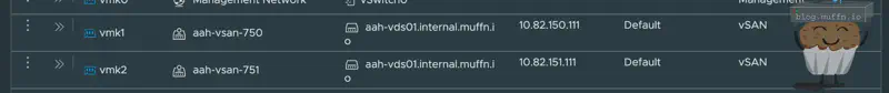 Then, 2 additional VMKs are created for the vSAN traffic, one for each PG. This doesn’t need to be routed, but the VMKs need to be able to speak to each other across hosts.