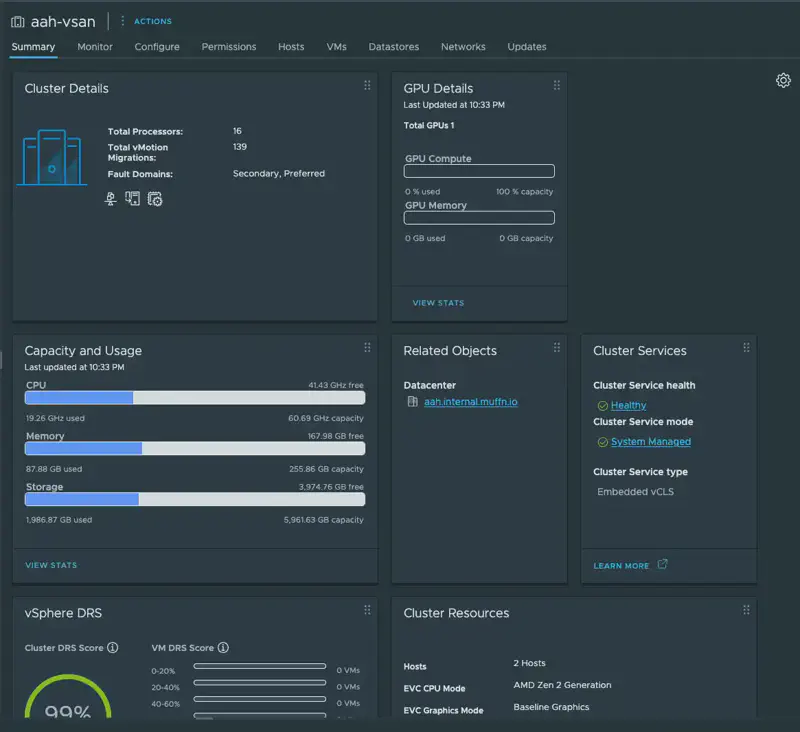 Since then, I’ve built all my automated tooling around VMware products, I have VMware certifications, my career involves their products, and so I am rather happy using vSAN for my personal needs.