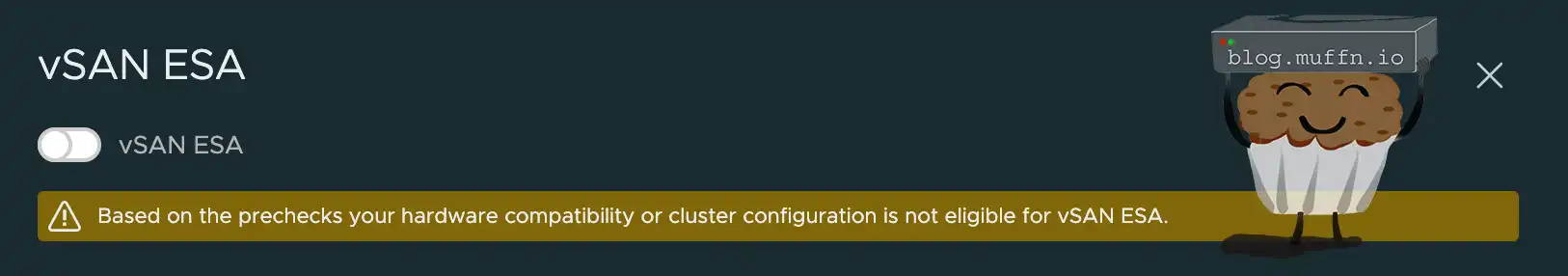 One thing I later learned about ESA was that it’s only supported on nodes that are certified for it by Broadcom. I just assumed it was ’nice to have’ but it’s actually a requirement, you just cannot deploy ESA with compatiblity warnings, for the most part anyway..