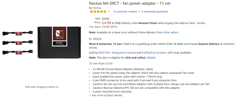 So here you can see I’ve put these adaptors inline with the fan and the motherboard and the RPMs have indeed dropped and the low-level hum has now been resolved. Dope.