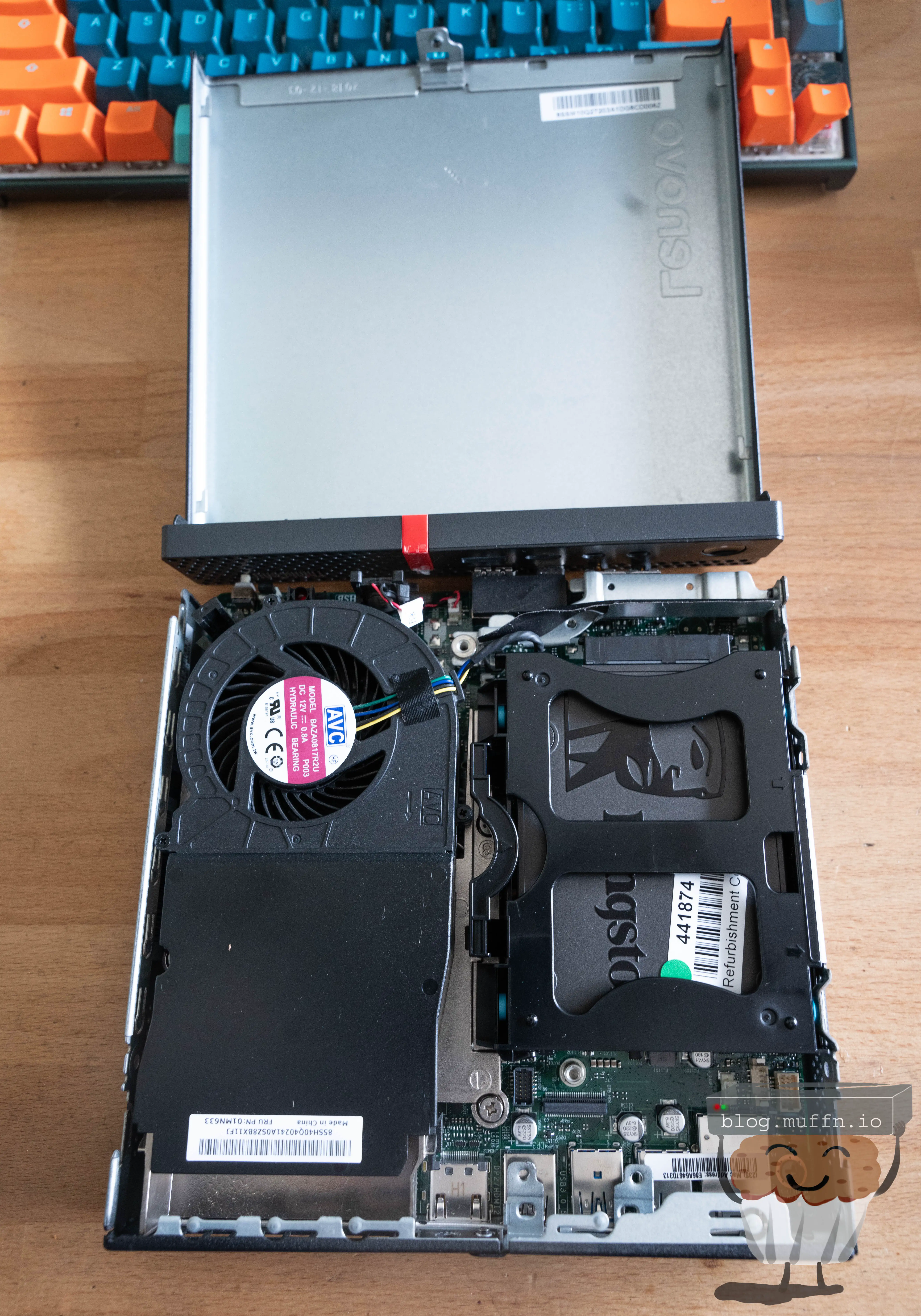 The M720q is a well-designed SFF machine. One screw at the back removes both the top and bottom cover.