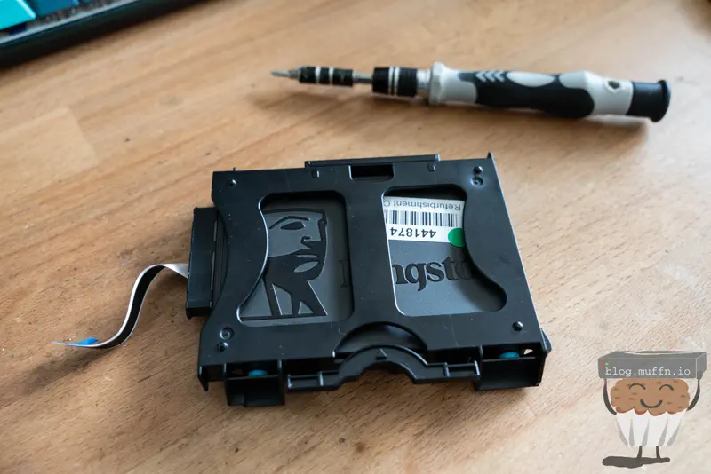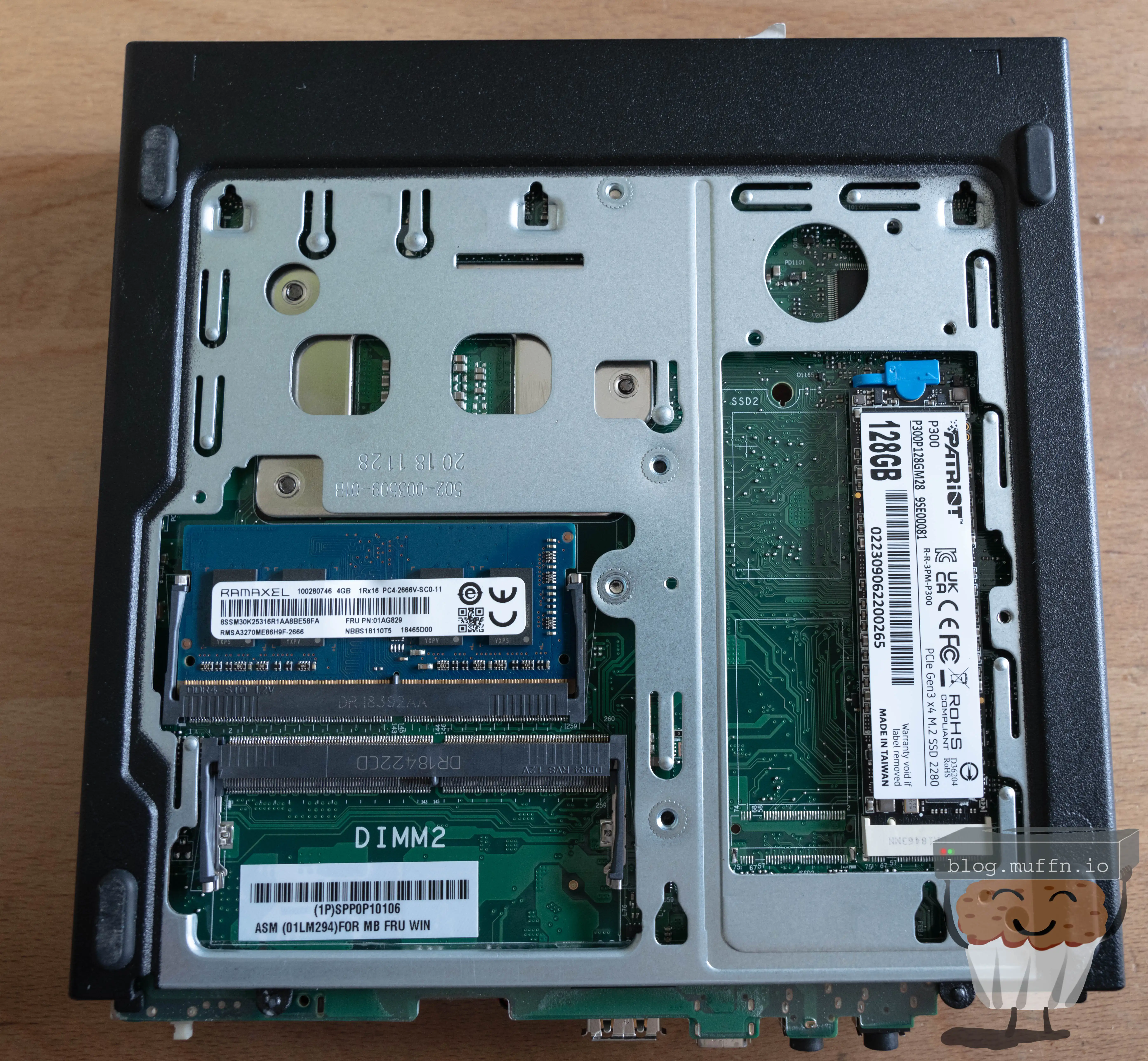 The bottom of the machine has a panel that slides out which houses the dual channel memory slots and an NVME slot. This is where I slapped in one of the many cheapo NVME drives I usually buy on sale for these applications.