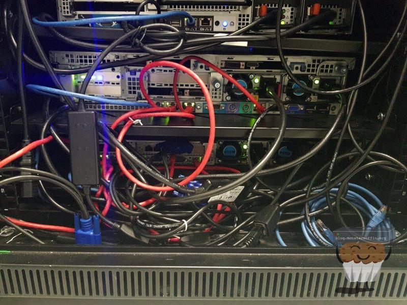 Admittedly it’s a bit of a clusterfuck but honestly, that’s not really my problem. One thing that is slightly annoying is that someone has decided to mount a 2950 right above me lopsided, but as long as it doesn’t fall on my server I’m not awfully bothered.