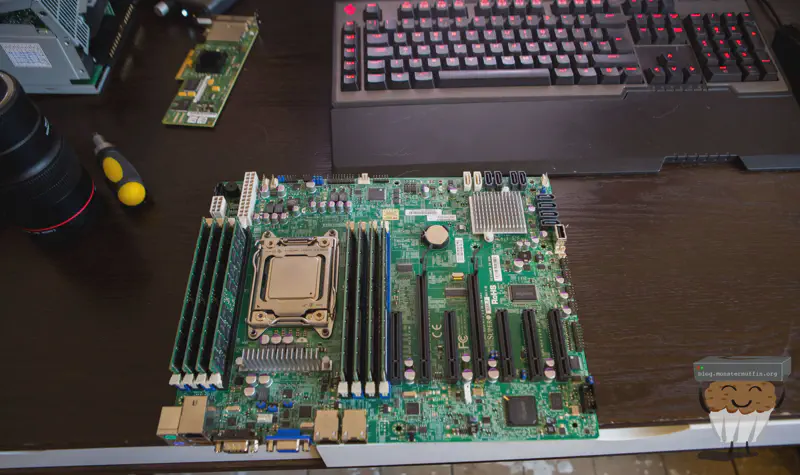 The reason for choosing this motherboard was the price point, at it was a pretty good deal in my book and had plenty of PCIE expansion for any future endeavours and the cards I was using. The board supported 2011 socket processors, which I find is a nice balance of power and efficiency. The board has 2x 1GB intel NICs, which is a must and some remote management which is nice as well. Supporting large amounts of memory is also a plus too.
