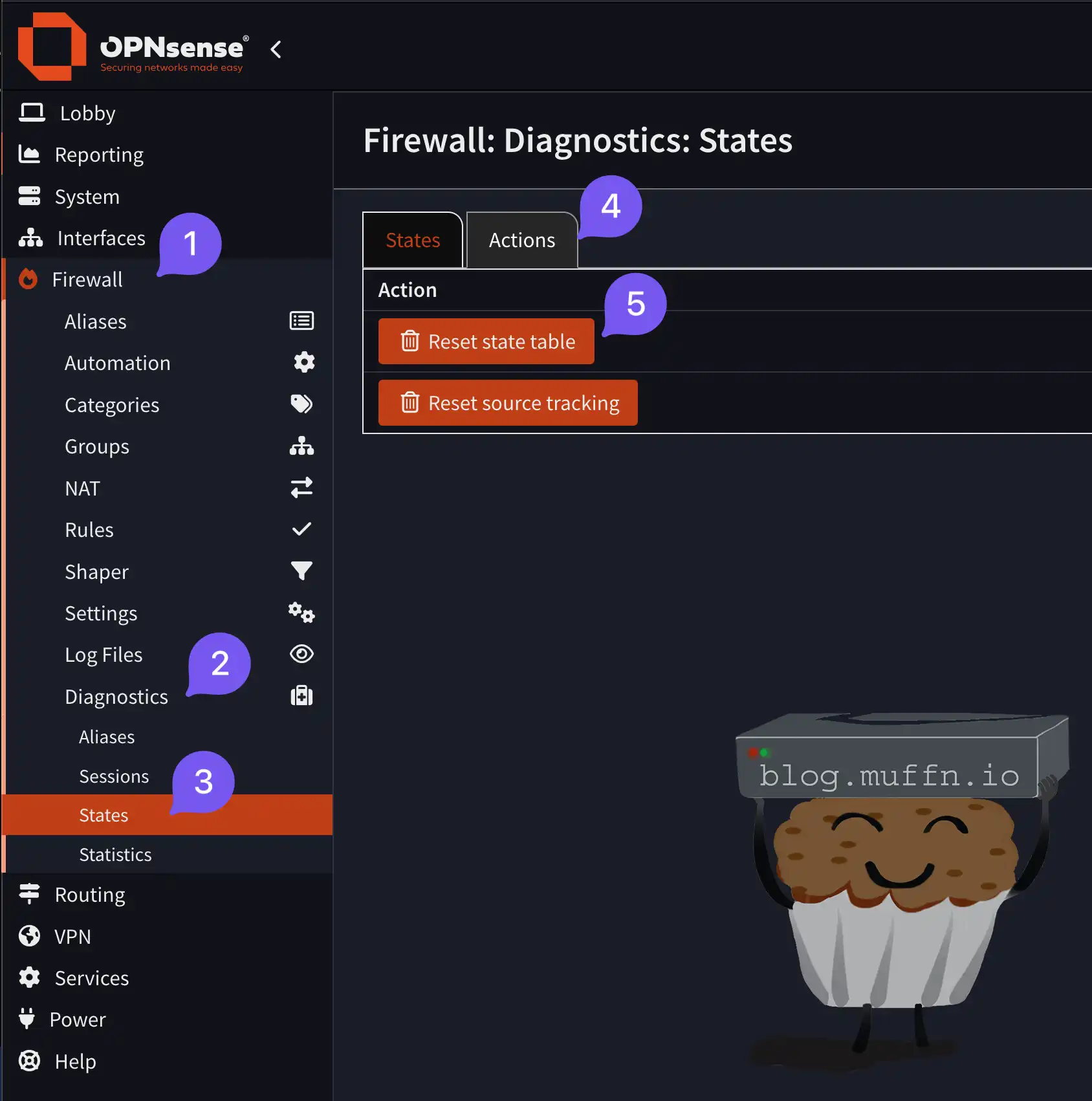 | Just added a site, not working | Clear state table: Firewall > Diagnostics > States > Reset states |