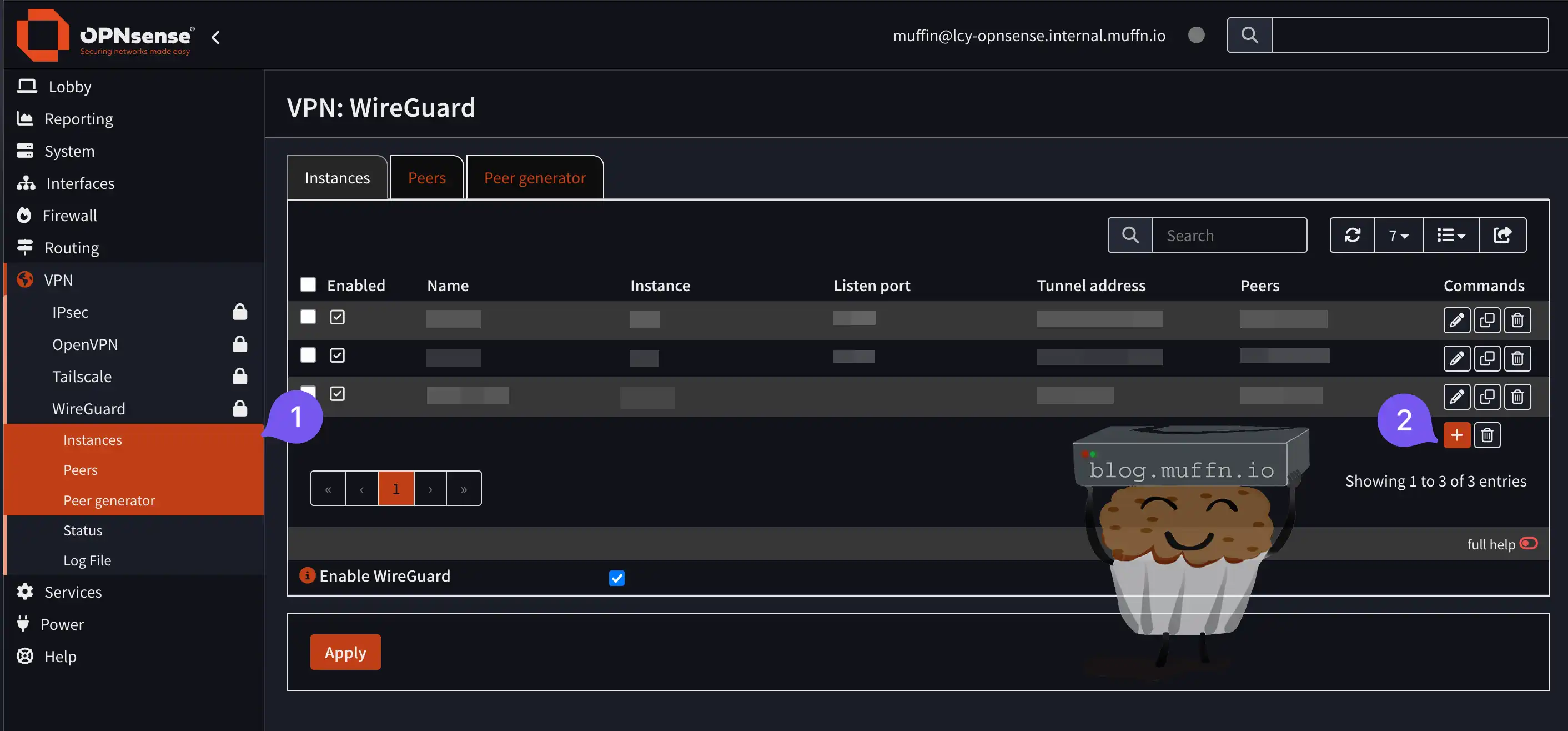 - Navigate to VPN > WireGuard > Instances