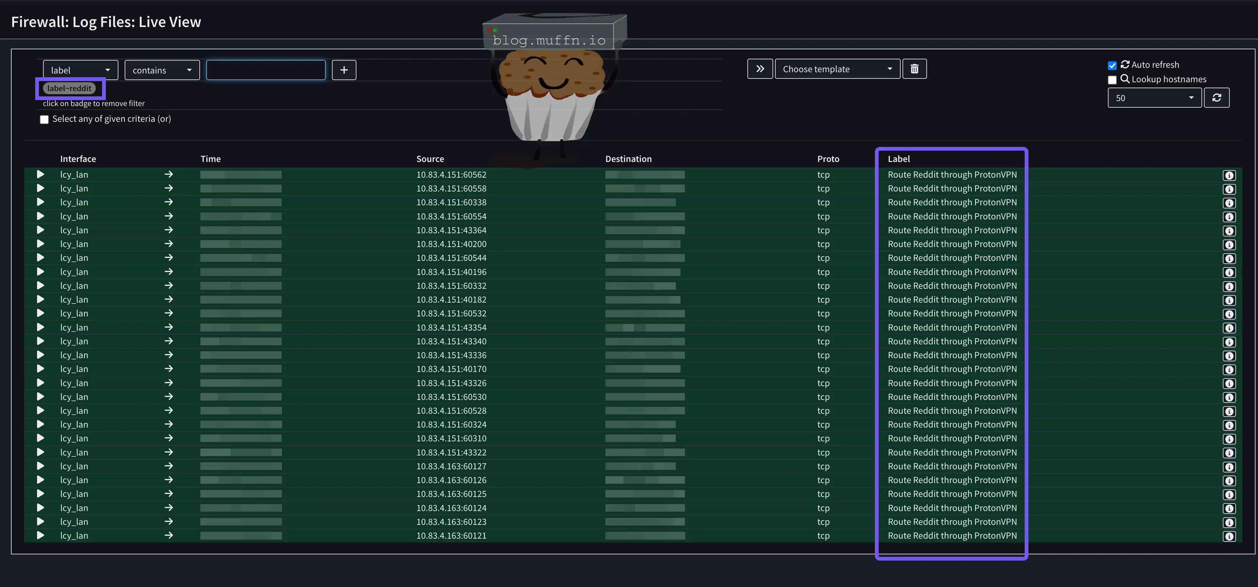 The best way to confirm your PBR rules are working is to watch the firewall logs in real-time as you browse. This shows you exactly which rules are being matched and which gateway the traffic is using.