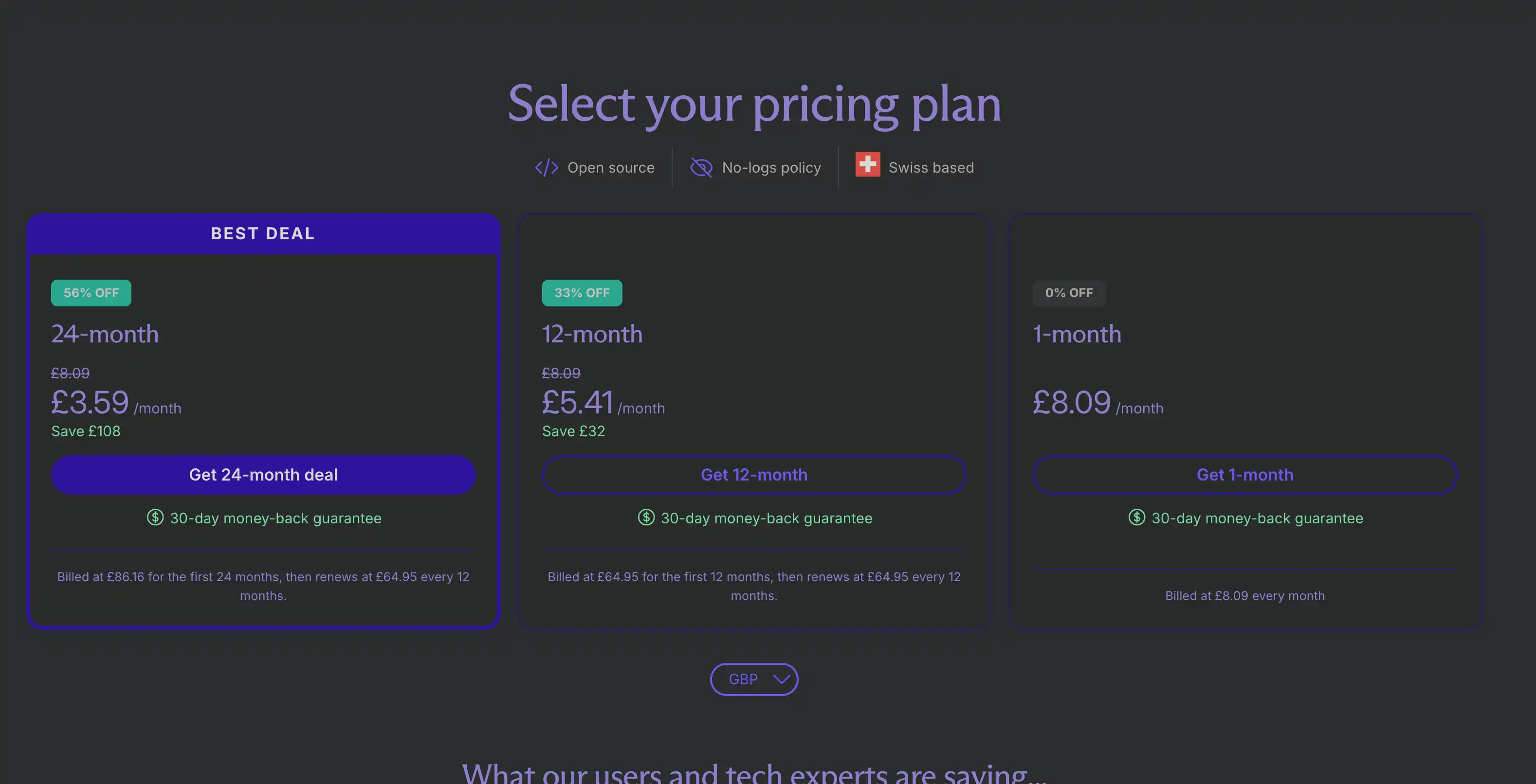Other options are available but I cannot comment on them. The only other provider I can recommend is Mullvad, but the Proton offering is a lot more generous for cheaper (especially if you use the link below).
