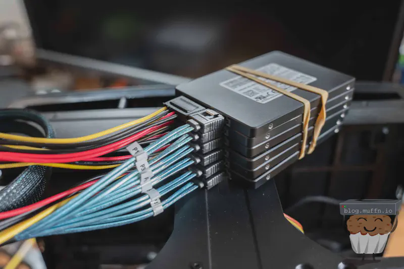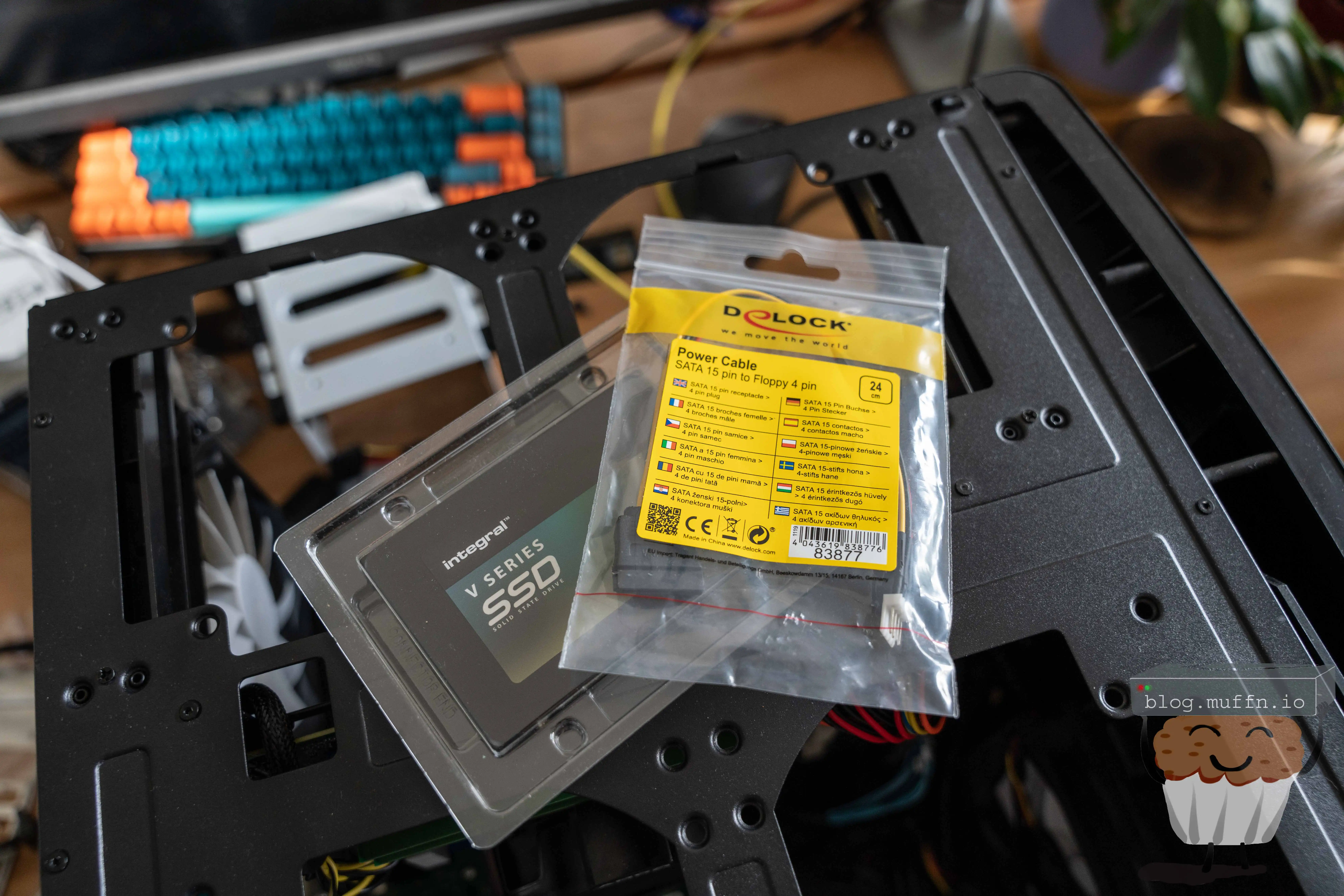 For ‘mounting’ the SSDs I just straped them together and used the cables I bought to neaten the power and data. This worked really well.