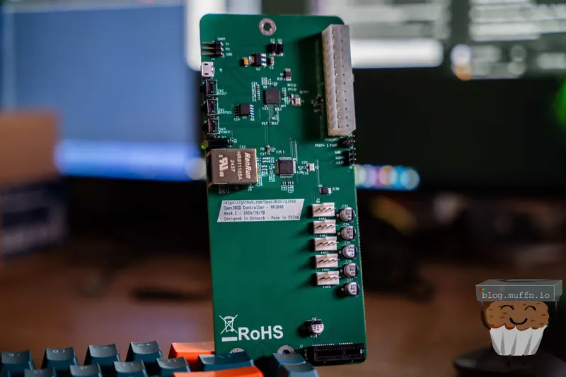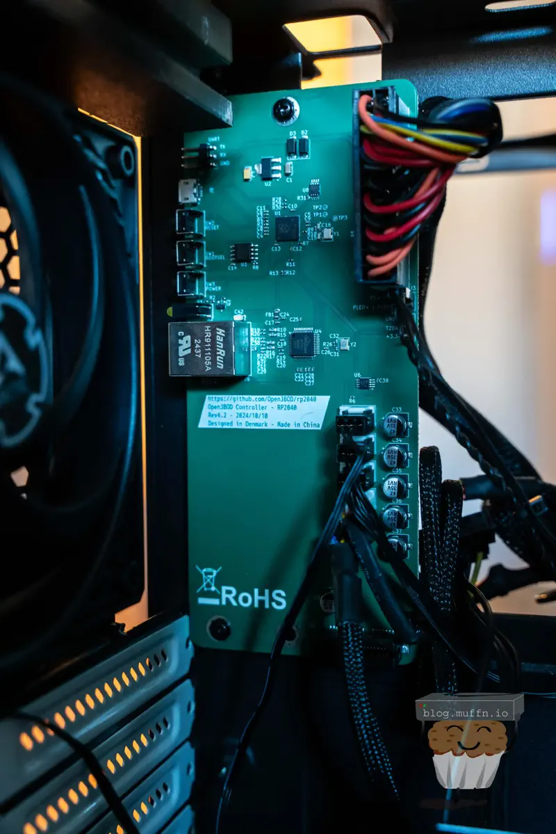 At the heart of the OpenJBOD project is the OpenJBOD RP2040, an open-source control plane built around the Raspberry Pi RP2040 microcontroller. It handles network management over Ethernet, ATX power supply control, and has a PCI-e slot for standalone SAS expanders. There’s also a fan controller with five headers, an on-board temperature probe for fan curve responses, and an optional external probe for readings near the disks.