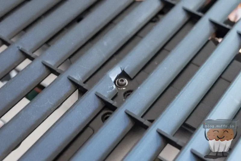 Mounting the rails was easy enough, although I did do a rather awful job at it. I measured where the holes should be based on the side with existing mounting holes, then marked the holes and drilled them out.
