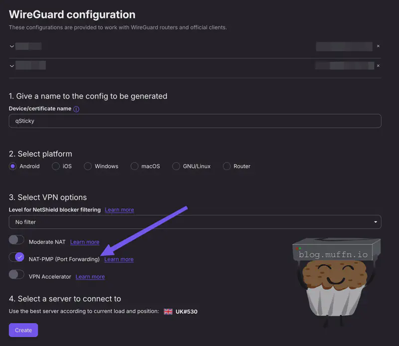 The Wireguard config can be configured as above or by mounting a Wireguard configuration into the container. The above approach is better IMO as it allows you to easily change settings, like which country/city to connect to.