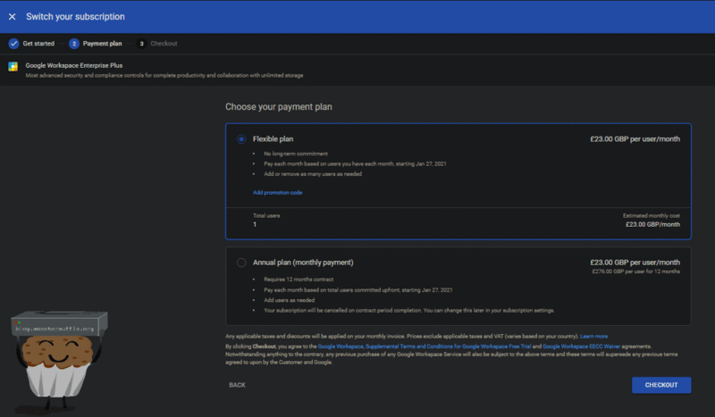 Now you will have the ability to upgrade to Google Workspace Enterprise Plus. Go ahead and do this.